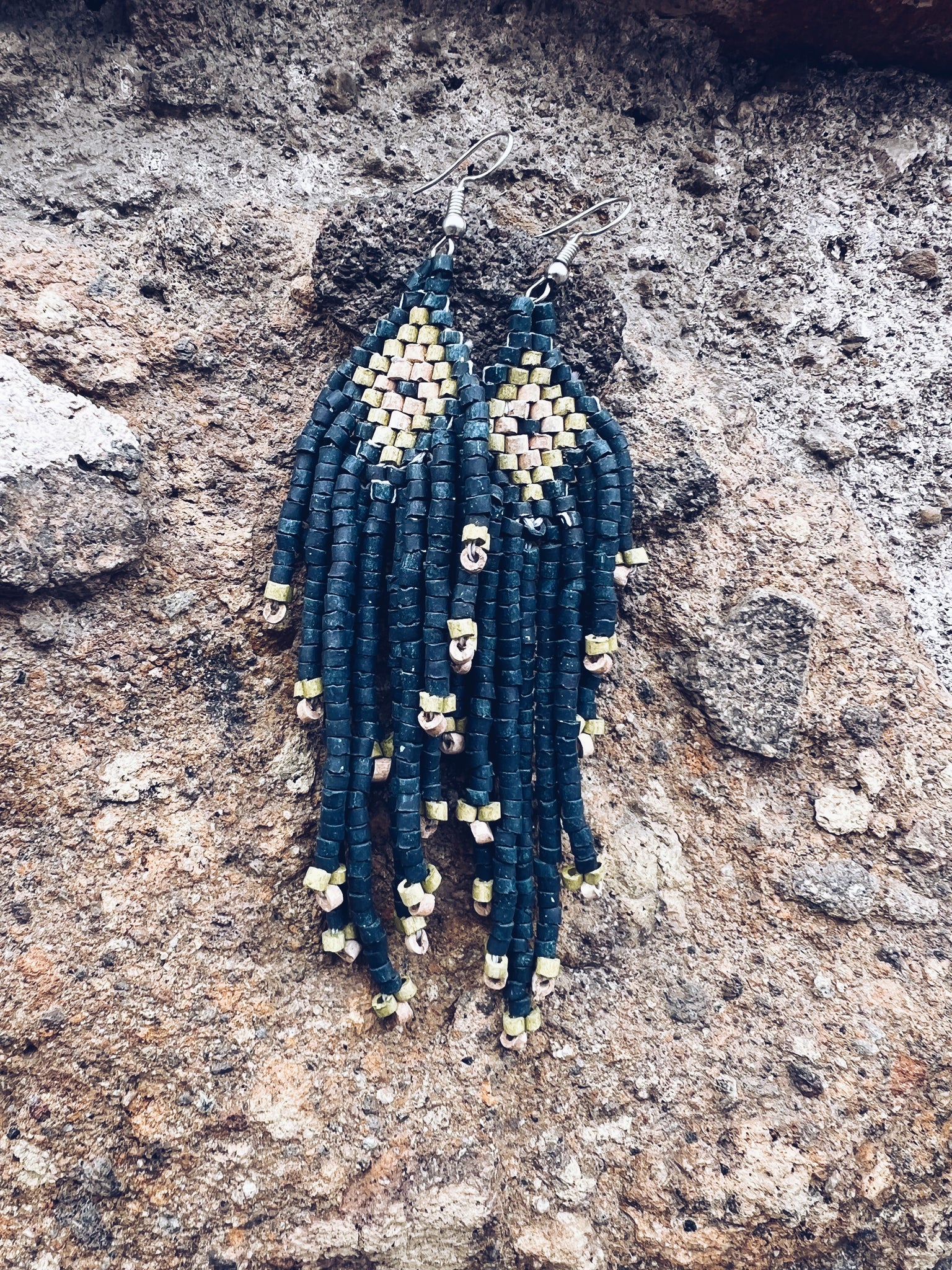 These handmade clay bead earrings are crafted in Guatemala by local artisans using small, hand-formed clay beads. Each bead is shaped, fired, and coloured using natural pigments, giving the earrings their soft, earthy tones and matte finish. Subtle variations in size and colour are part of their beauty and reflect their handmade nature.